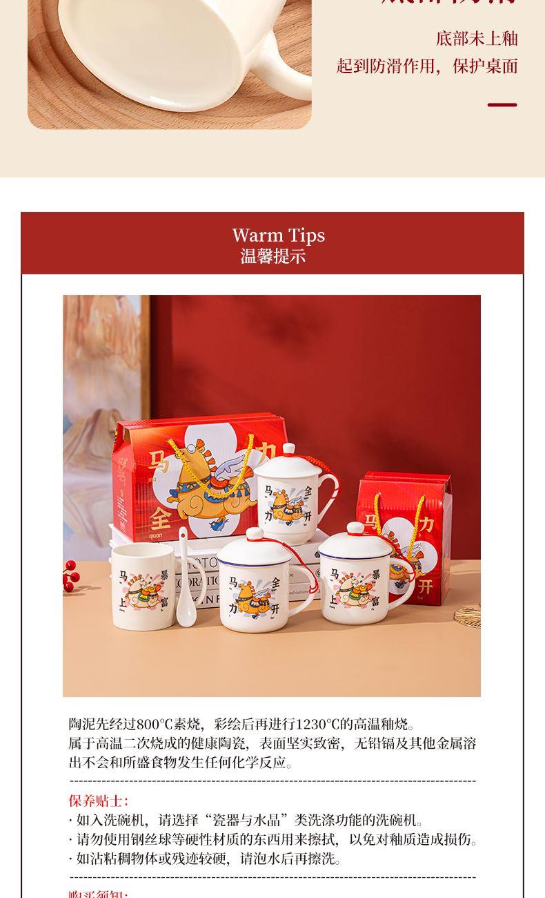 产品规格:杯=口径8cm,高度9.7cm;陶瓷勺=长度12.8cm