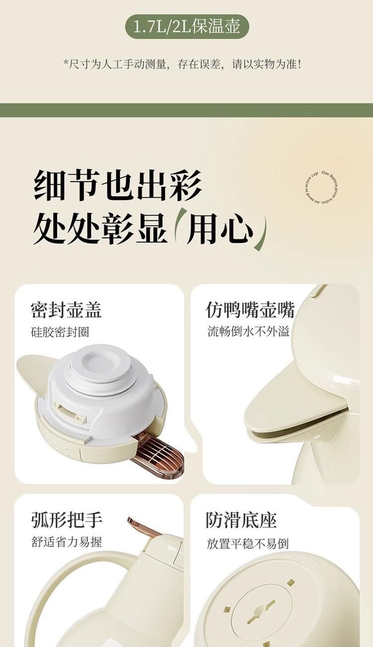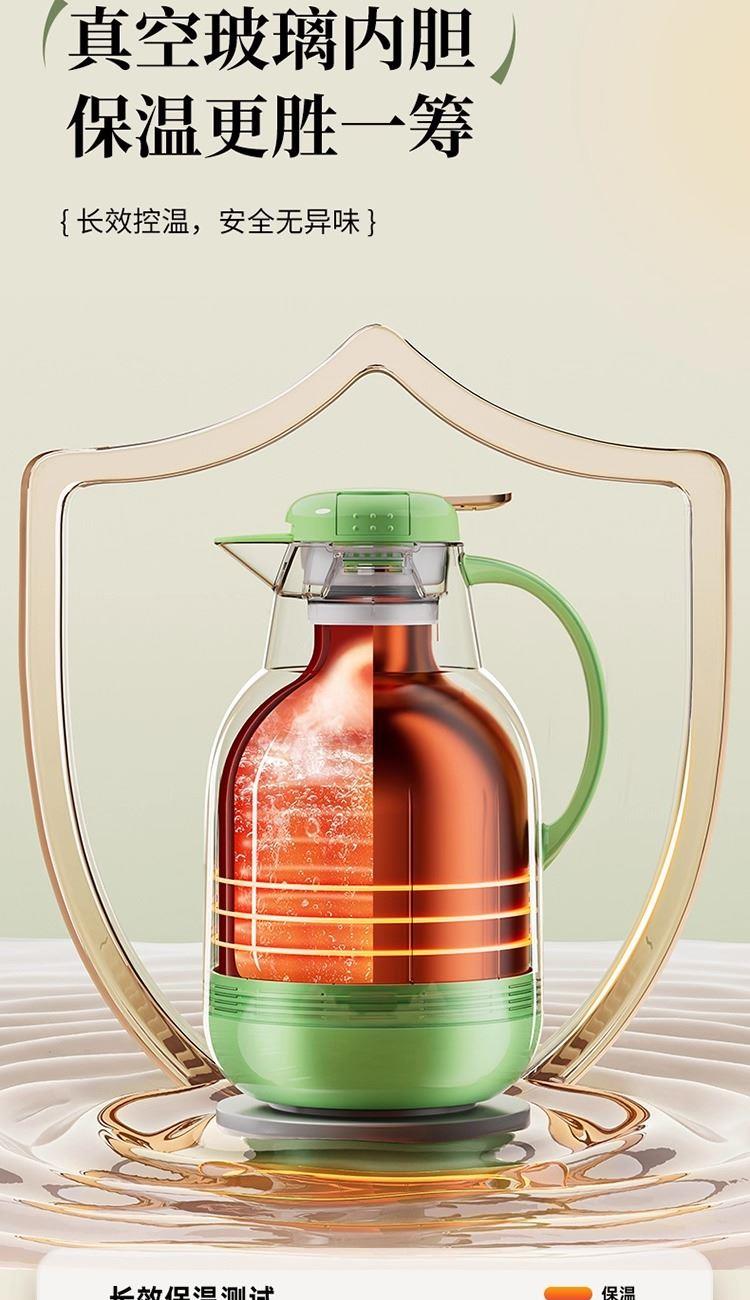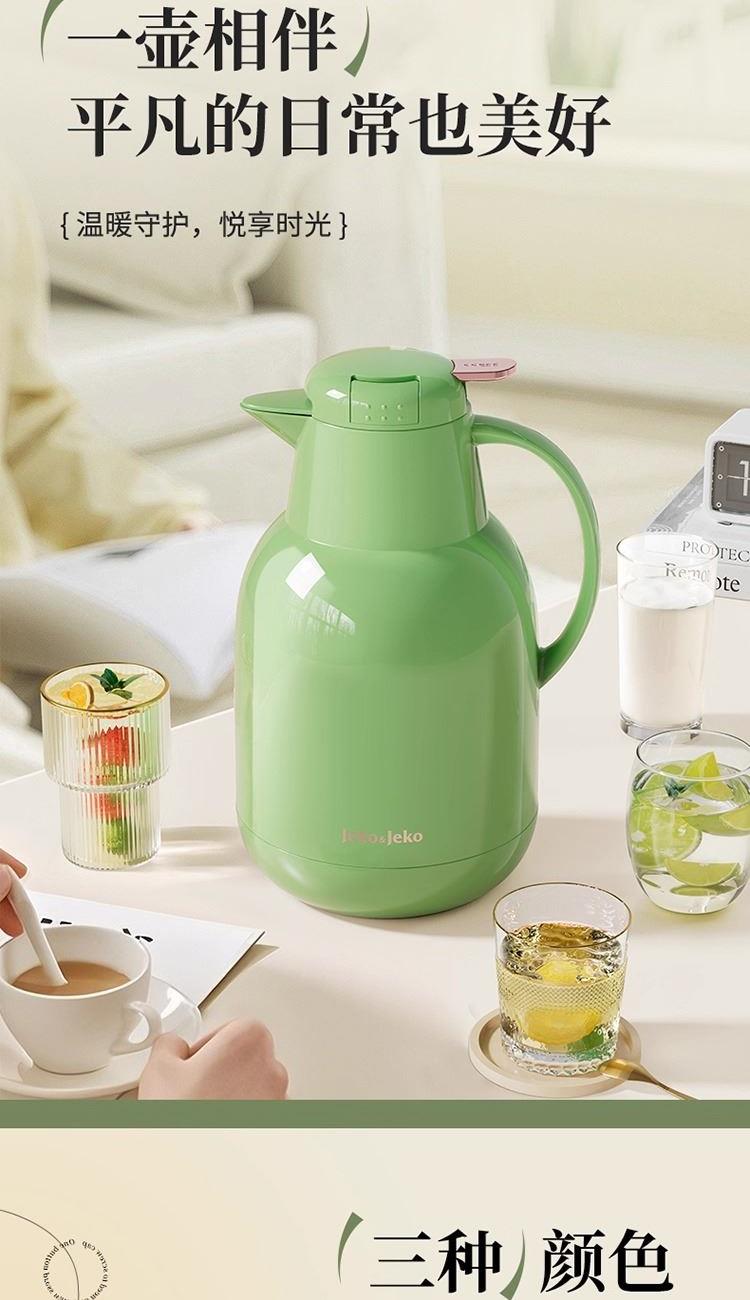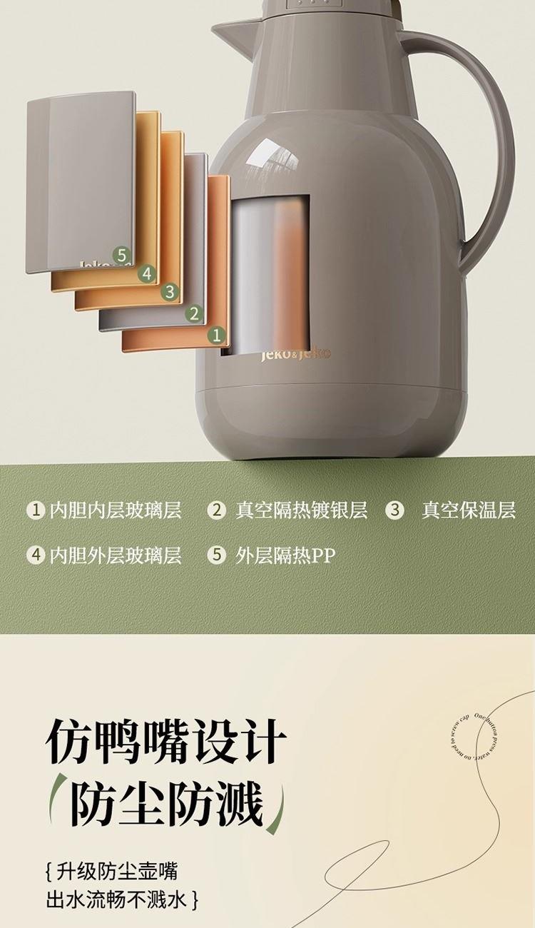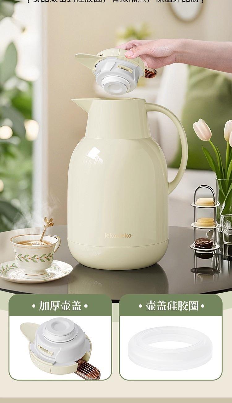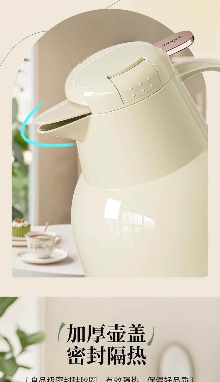 牛皮纸邮购盒包装,建议慎拍 容量:2000ml 材质:PP外壳+玻璃内胆+硅胶圈 颜色:奶油白、牛油果绿、大象灰 产品特点: 1、食品级PP防护外壳 2、食品级高硼硅玻璃内胆 3、保温镀银层 4、高真空隔热层