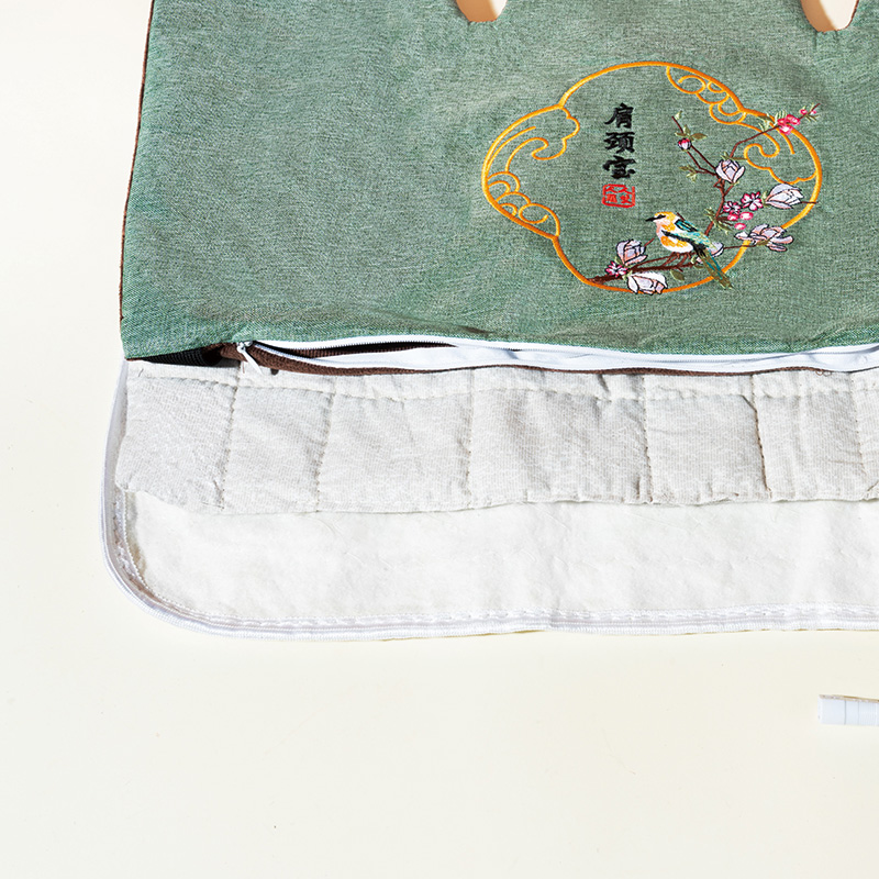 3、产品由亚麻刺绣套、艾绒垫,加热垫和控温开关四部分组成,内里水晶绒,贴身更舒适;多味本草艾绒垫,灸效好;分离式插头,九档控温,定时安全,居家、办公皆可用。