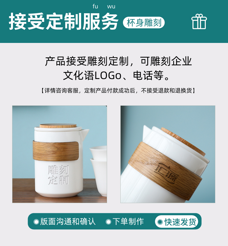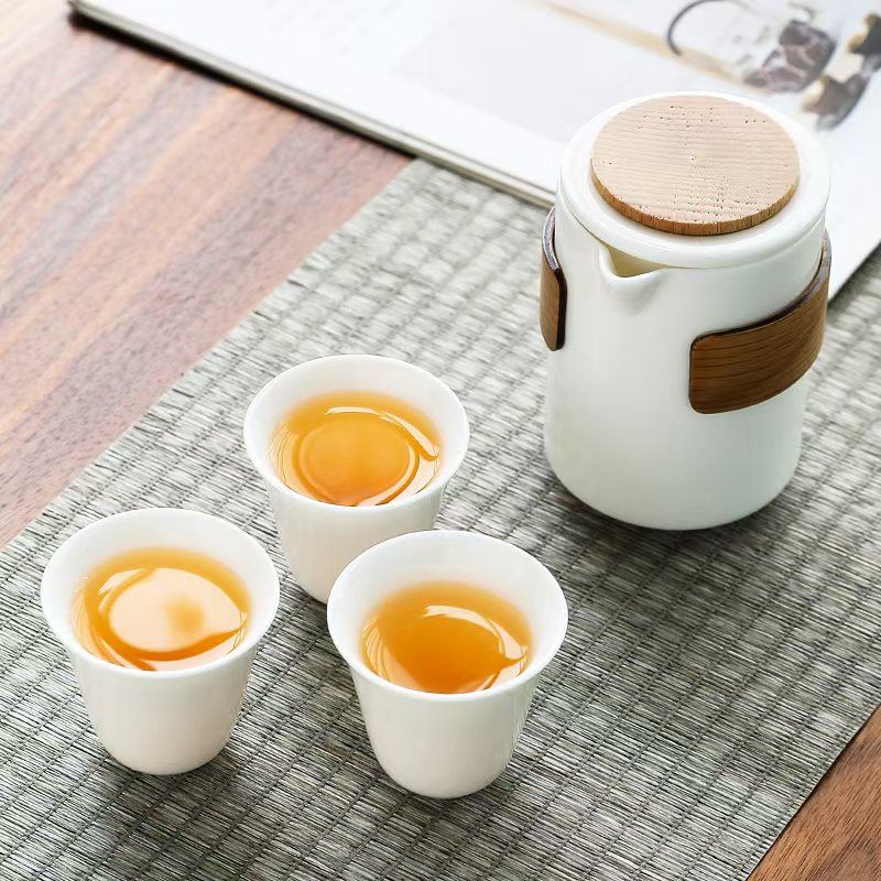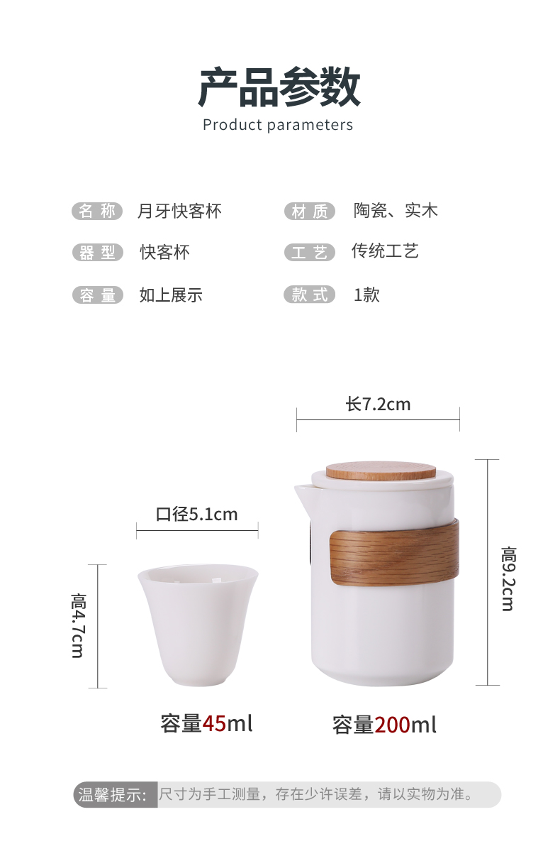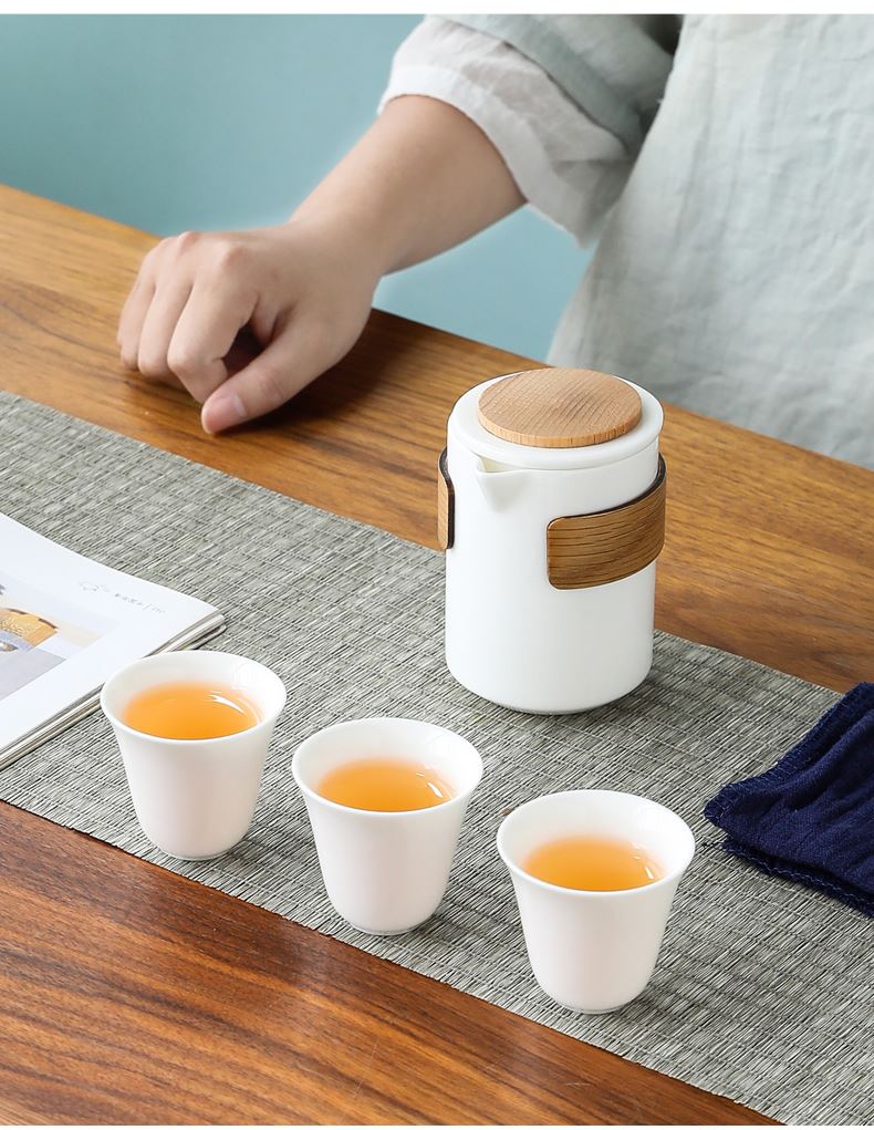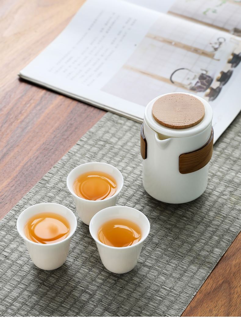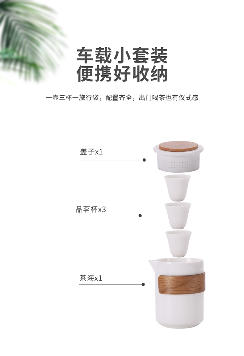 配制:1壶3杯 1旅行袋 1茶巾 规格:茶壶:直径7.2*H9.2cm 杯子:直径4.7*H5.1cm 材质:羊脂玉瓷 推荐说明:三个杯子可与壶上下重叠组合。实木盖子手柄,隔热防烫,又有设计美感。壶盖自带过滤孔,过滤茶渣,方便携带,简单实用。高雅时尚。简洁大方。羊脂玉瓷,瓷质细腻温润,触感舒适。似凝脂,如美玉。在阳光照射下,呈半透明羊油状,洁白滋润,故称羊脂玉,乃瓷中佳品。塑压布包,时尚精致上档次。