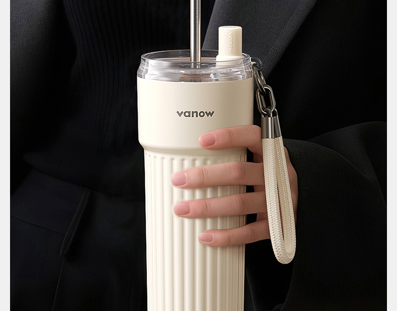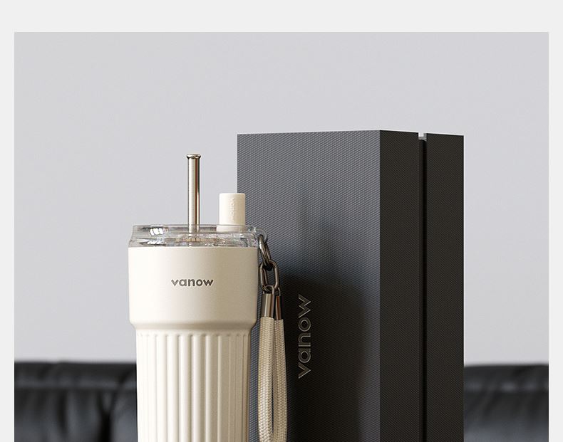 Vanow条纹吸管咖啡杯600mlVO-TW60XG