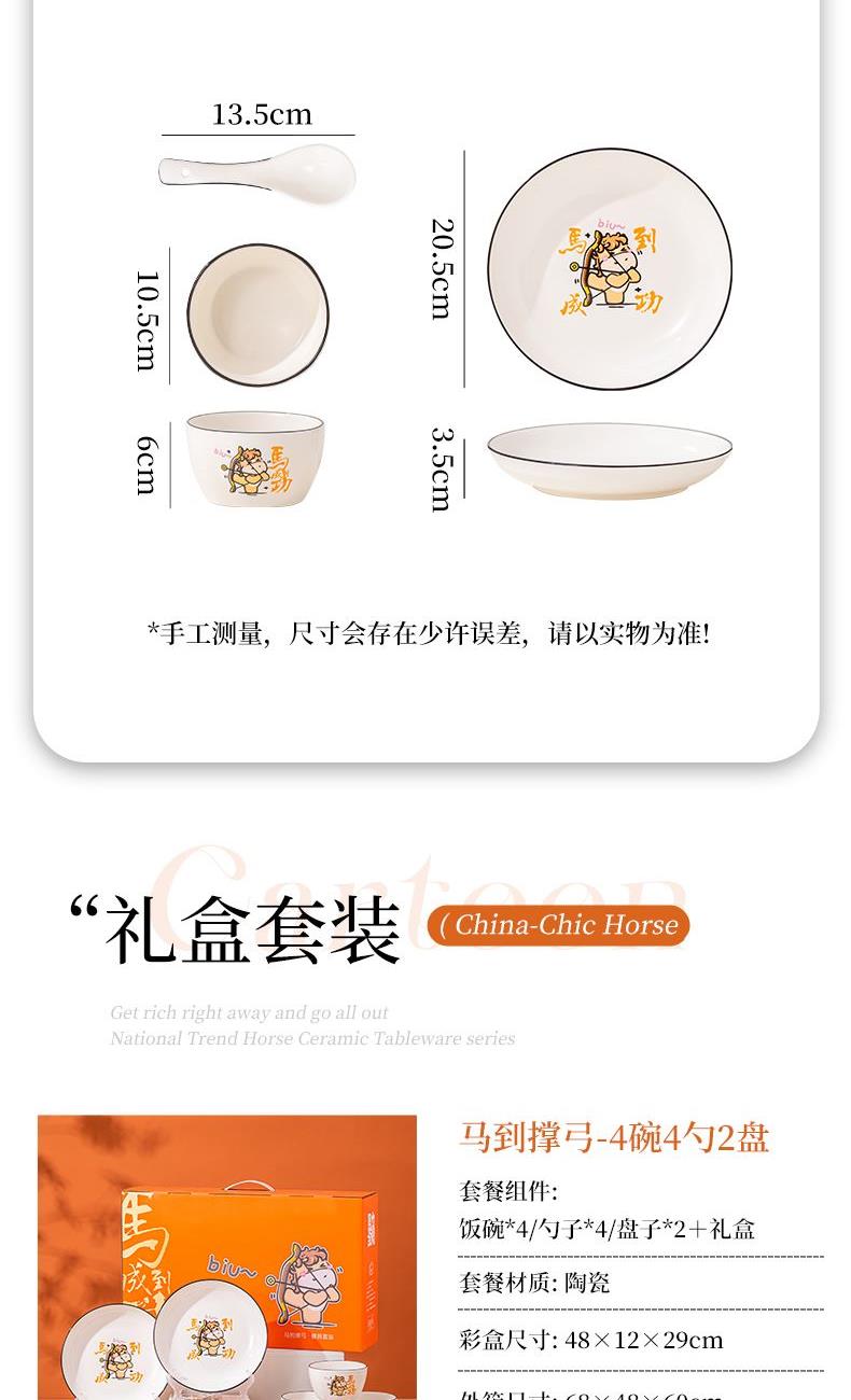 产品规格:陶瓷碗=口径10.5cm,高度6cm;盘子直径20.5cm,