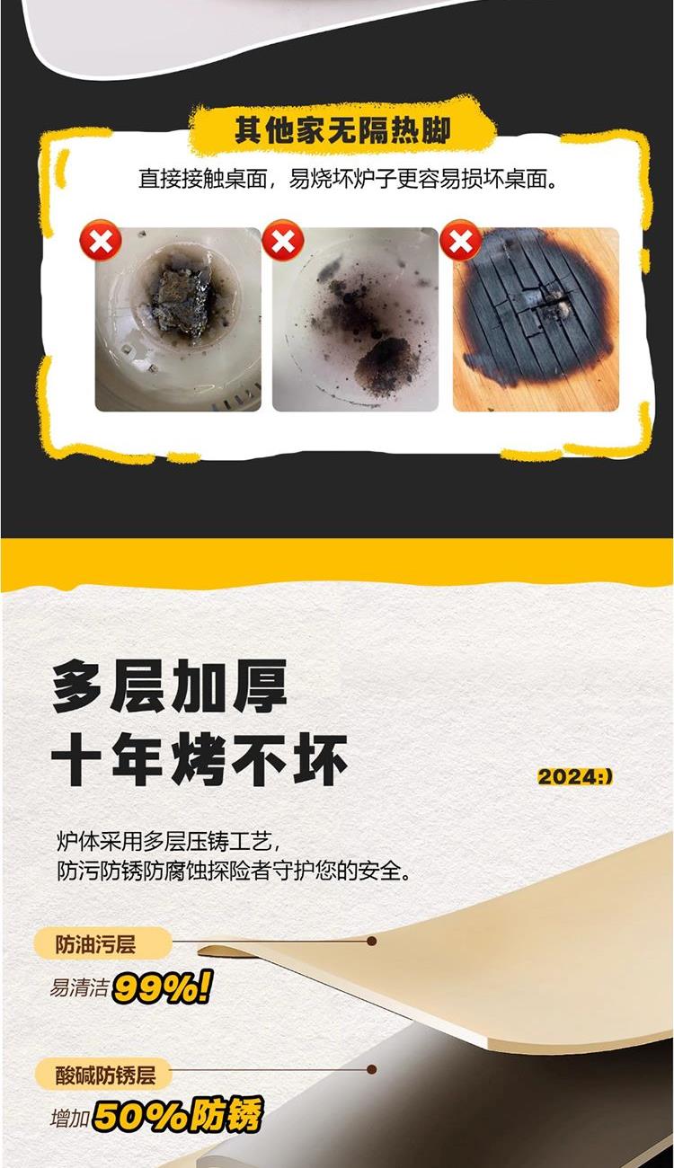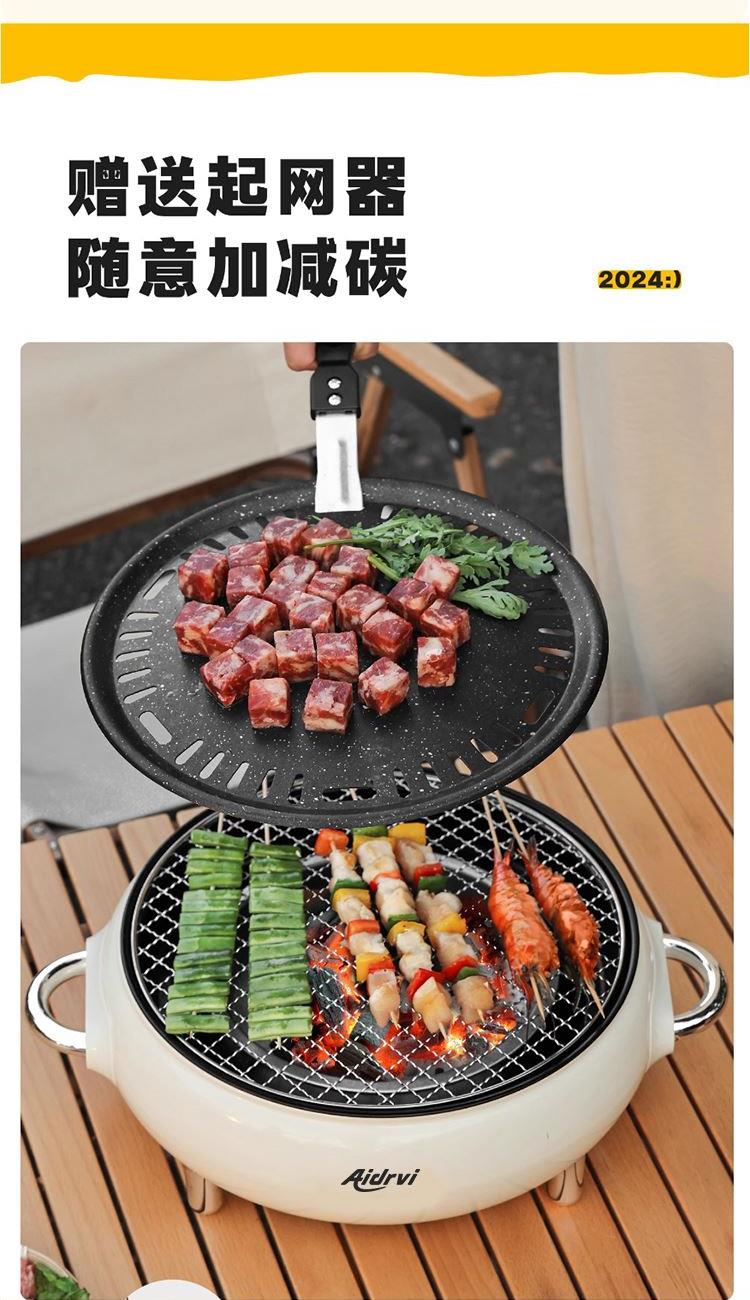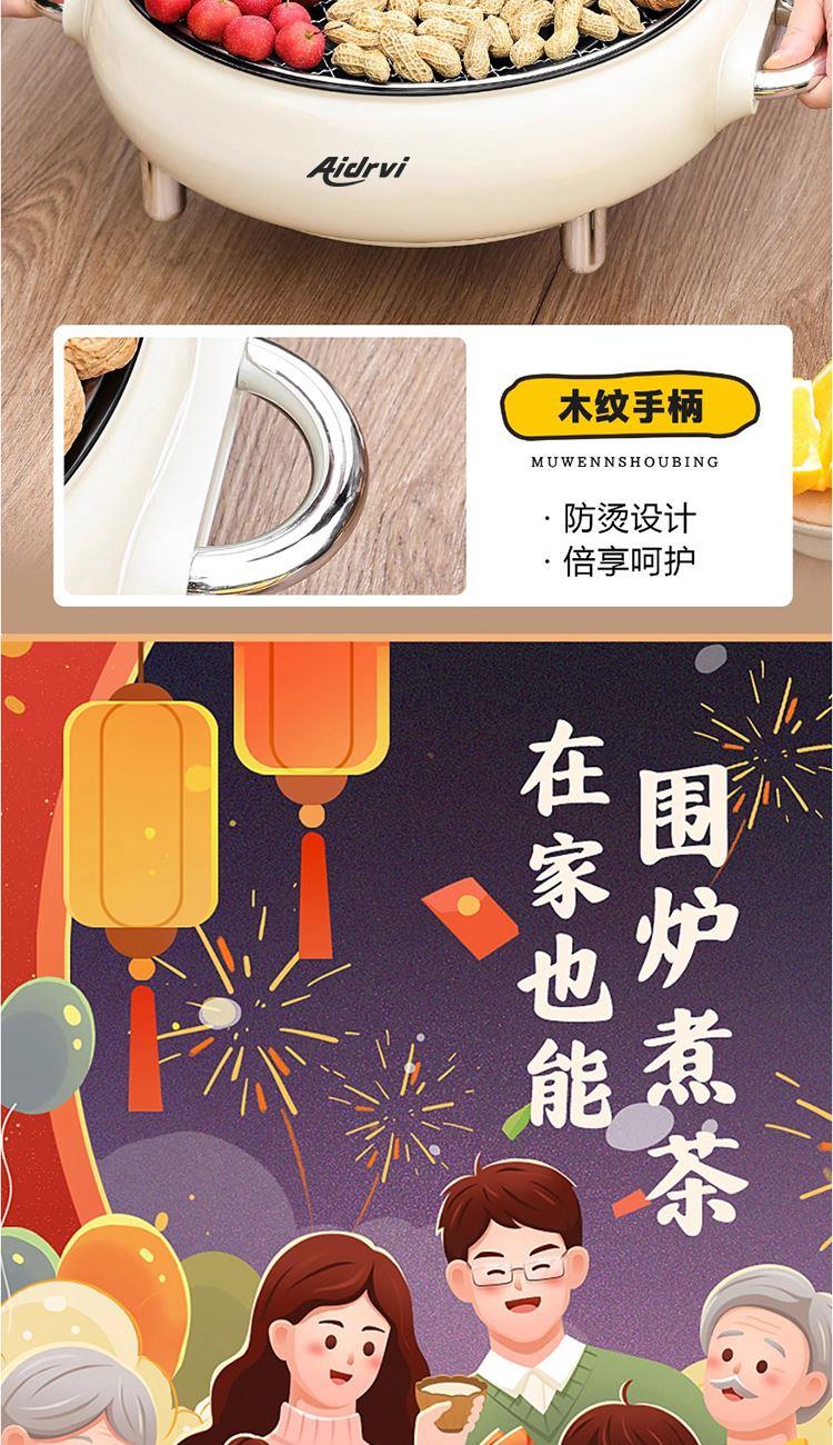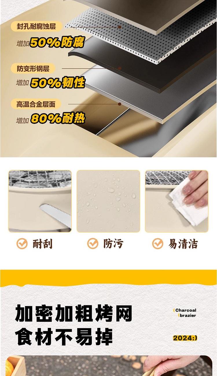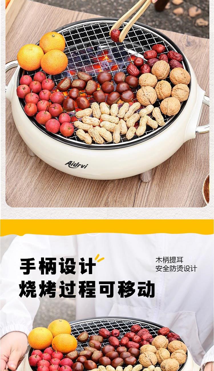 套装组合:围炉+烤网+烤盘+提梁壶+收纳包 产品材质:加厚精铁+高硼硅玻璃 产品尺寸:围炉:36*13.5cm/提梁壶:1000ml 彩盒尺寸:58*16.5*36.2cm 外箱尺寸: 一炉多用,煮茶/煮酒/烧烤/取暖等满足更多需求; 一体成型加厚内胆,坚固耐用; 方格加密烤网,食物不易落下; 不粘烤盘受热均匀,导热快/耐腐蚀/易清洗; 分体设计,全身可水洗,省心省力,更卫生; 配备提梁煮茶壶,好友好茶配好器;