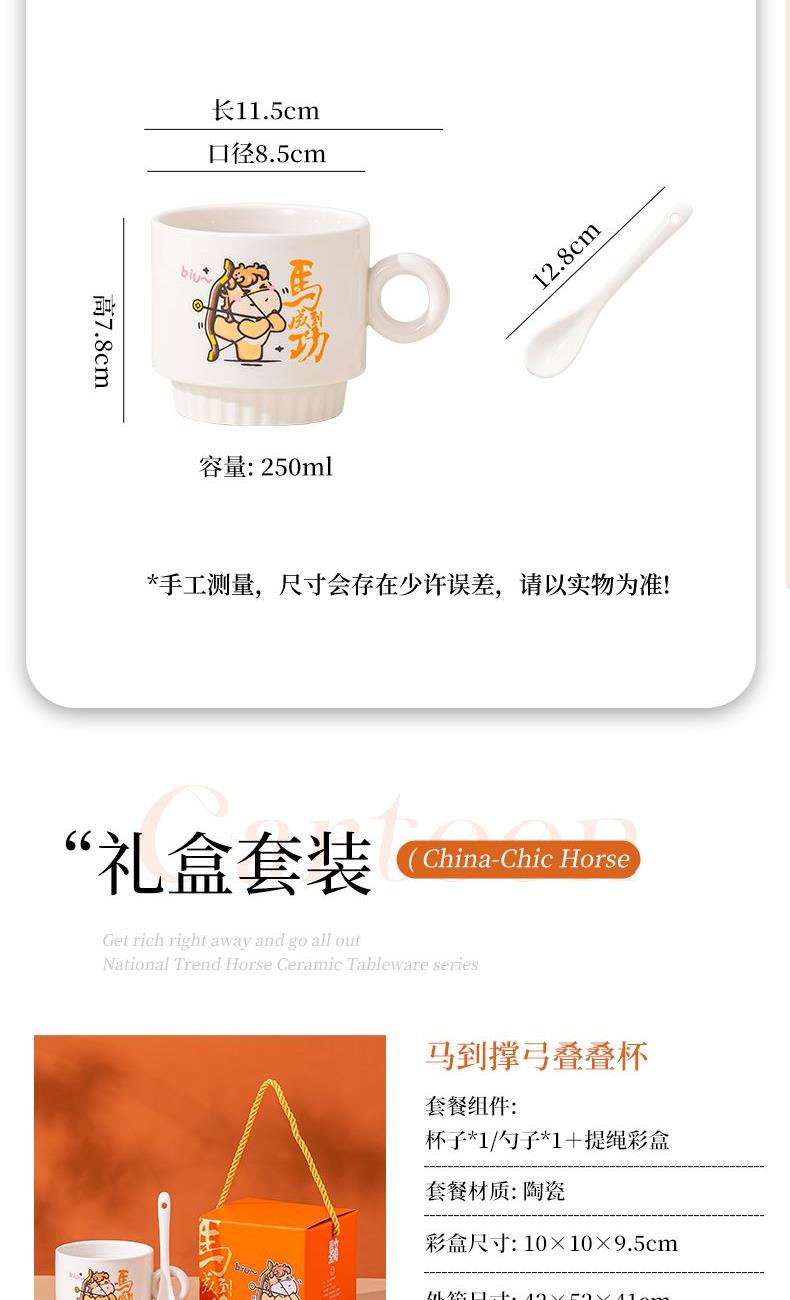 产品规格:杯=口径8.5cm,高度7.8cm,容量250ml;勺子12.8cm