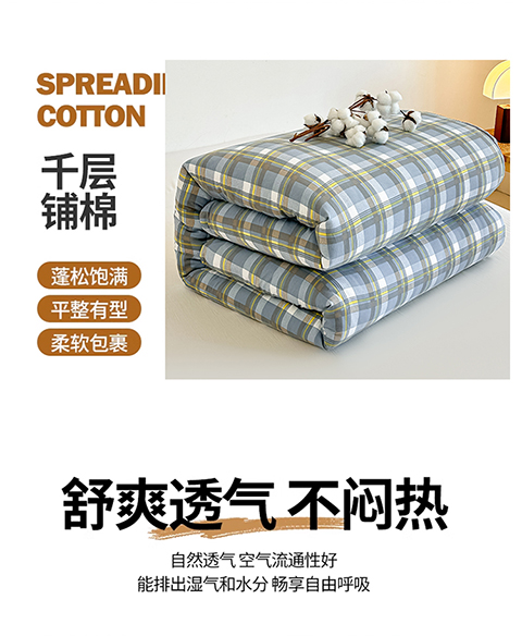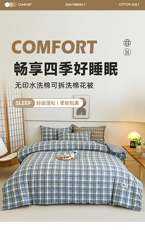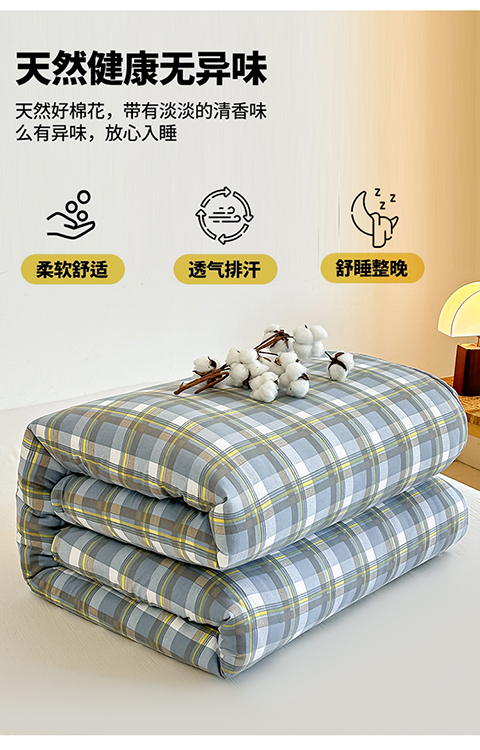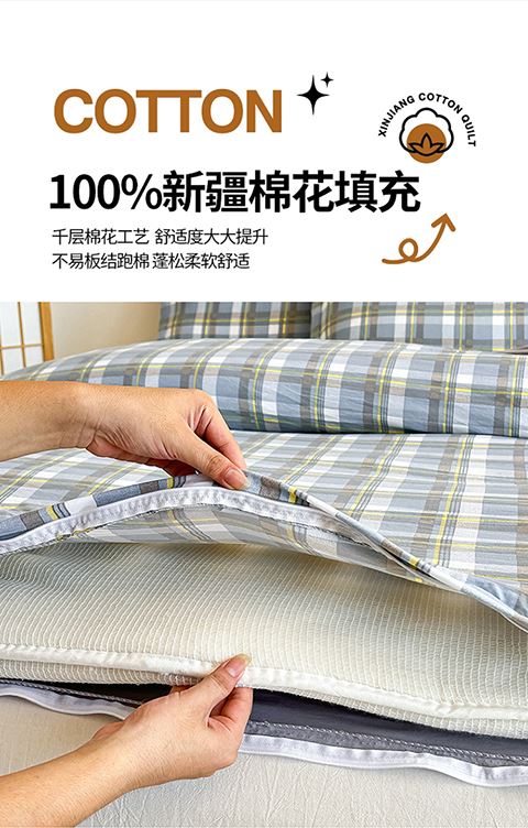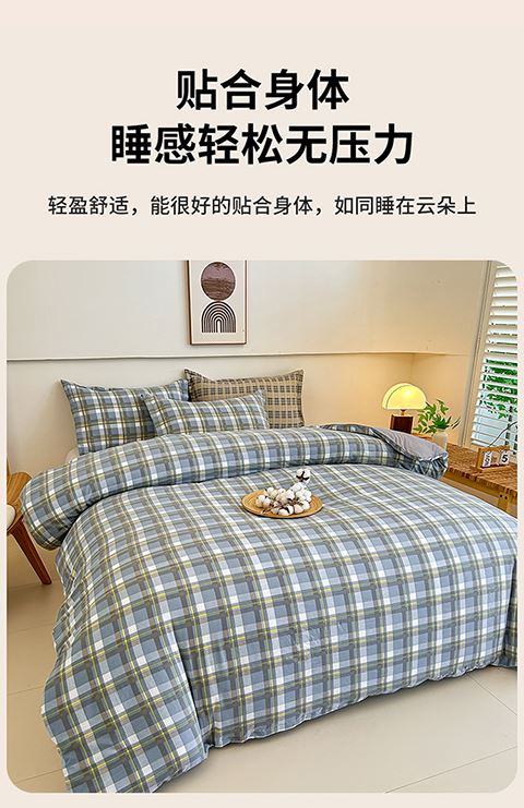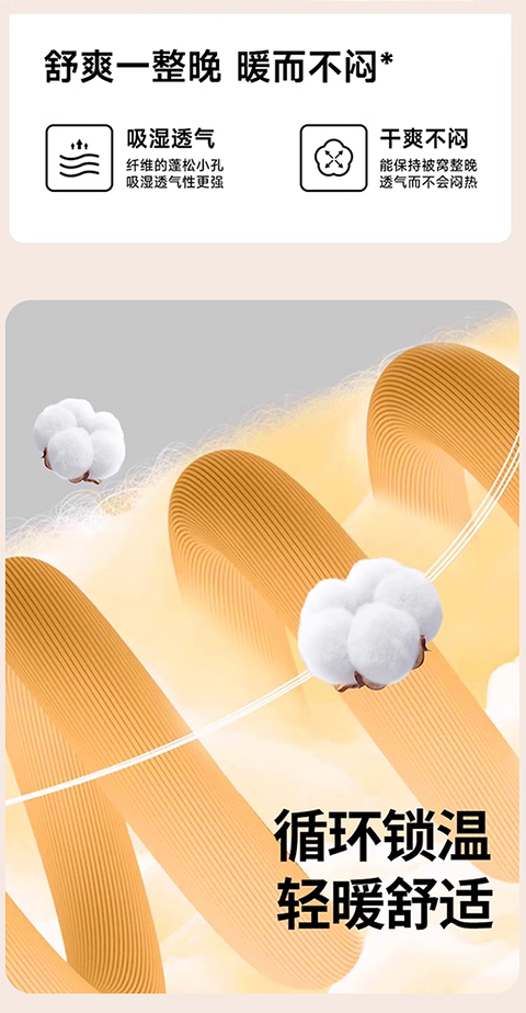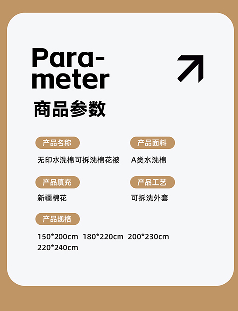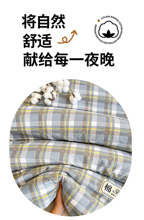 舒适亲肤面料,享受好眠。面料质地更为厚实,手感也非常柔软。安全更放心,更安全的接触屏障,对肌肤更友好,放心亲密接触,使用安心。棉花填充加超细超柔纤维,柔软蓬松不压身,被芯填充整张超细超柔纤维,睡不扁的轻暖蓬松,躺下,就被软到了~ 面料:水洗棉 工艺: 活套设计被套可拆卸 填充:棉花+超细超柔纤维 规格:200*230cm 6斤
