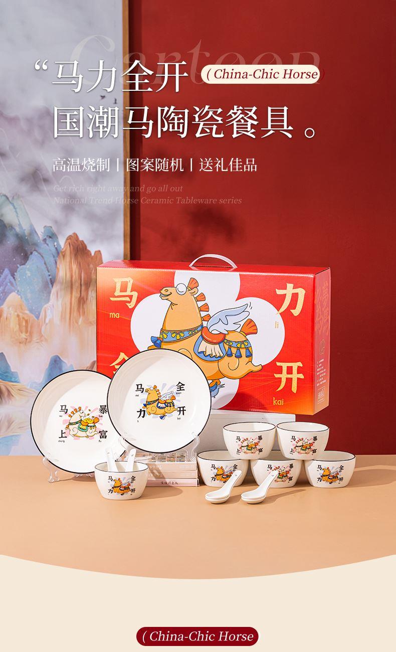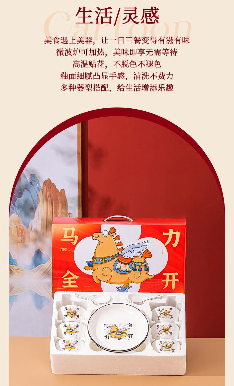 「翼马踏燕」纹样灵动鲜活,仿佛骏马振翅带风,踏出满室生机;不是老气的纹样,反而有点卡通新国风那味儿,摆桌上直接拉满视觉张力;让人新的一年活力十足,马力全开。