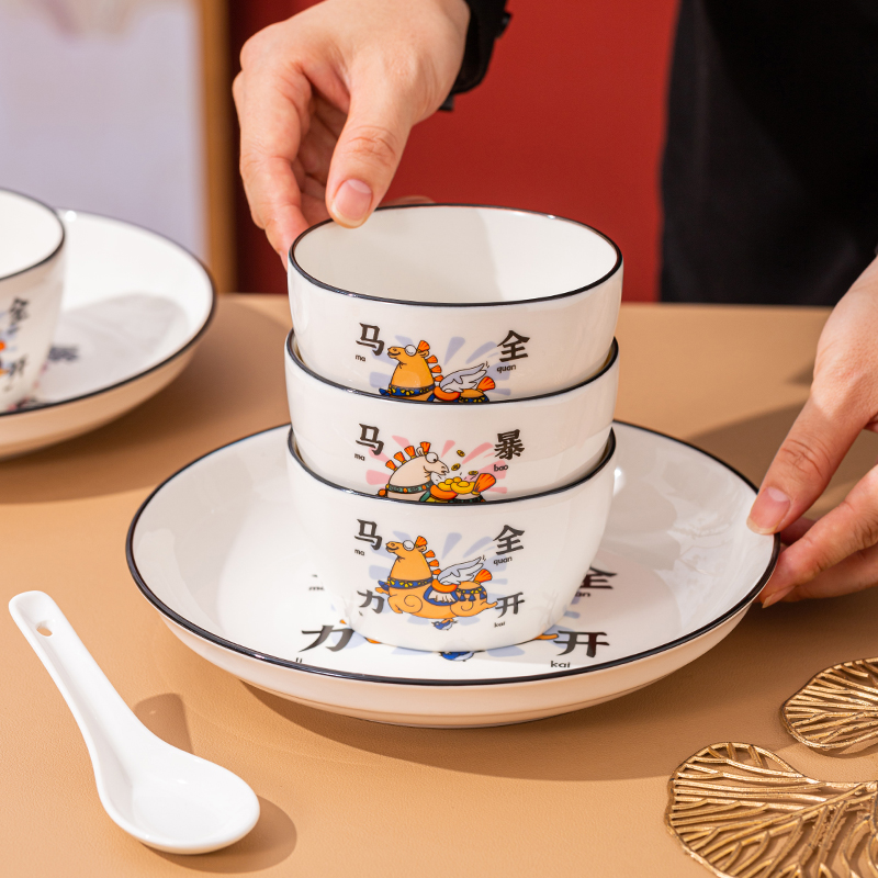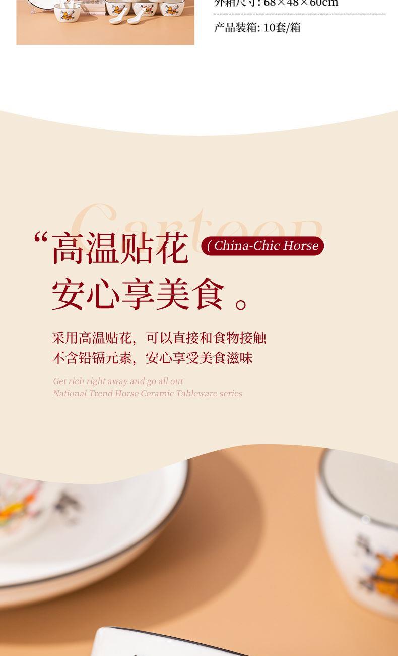产品规格:陶瓷碗=口径10.5cm,高度6cm;盘子直径20.5cm,