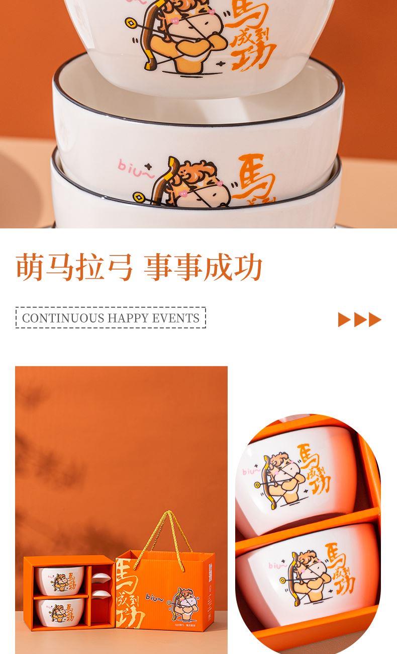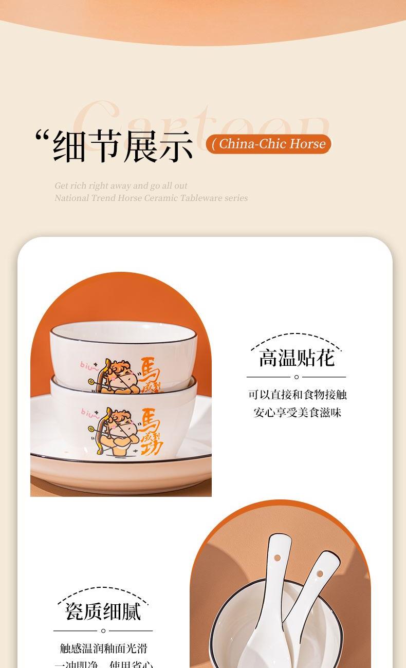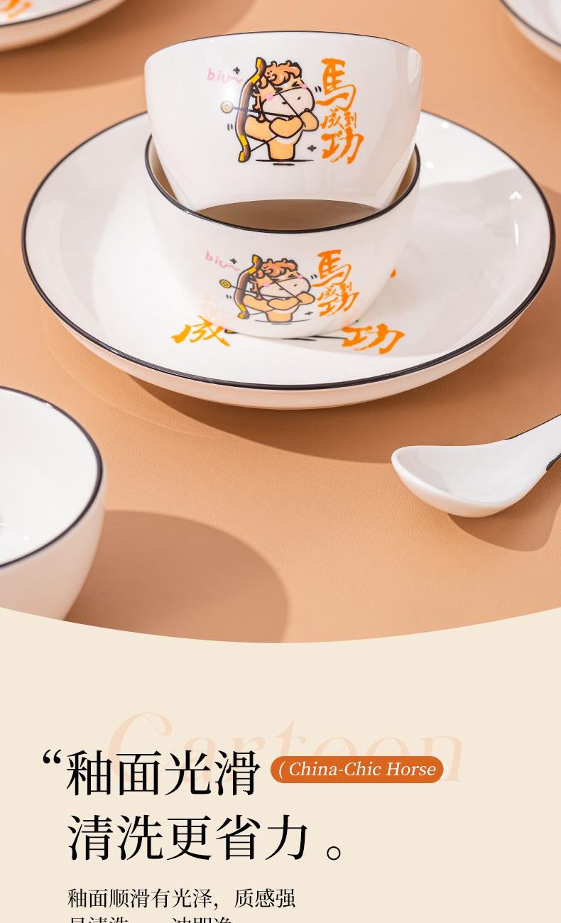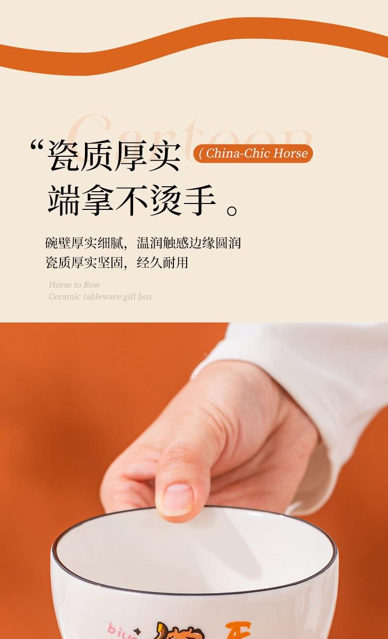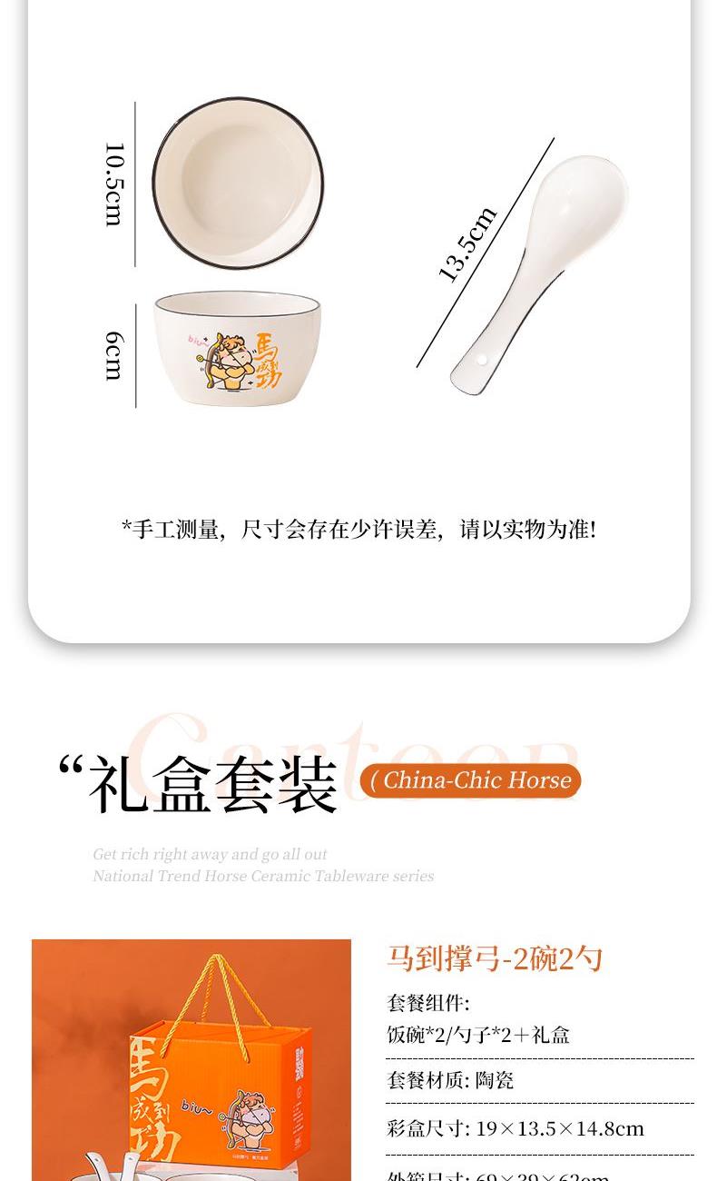产品规格:陶瓷碗=口径10.5cm,高度6cm;三弯勺=长13.5cm