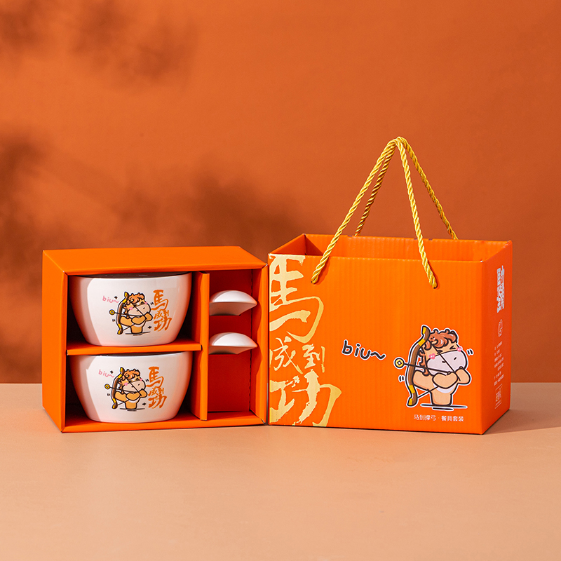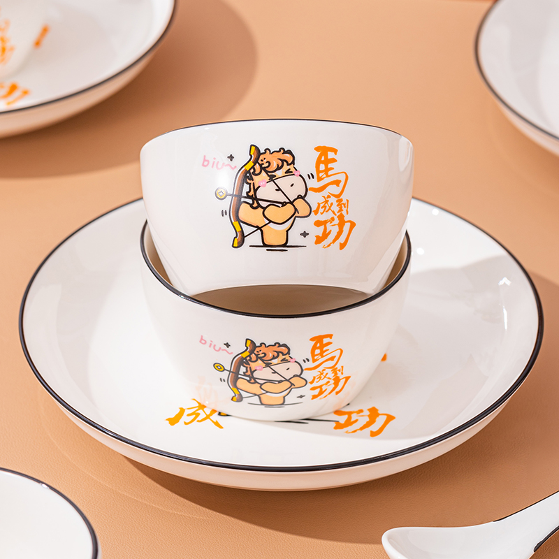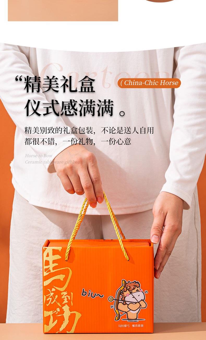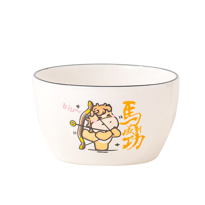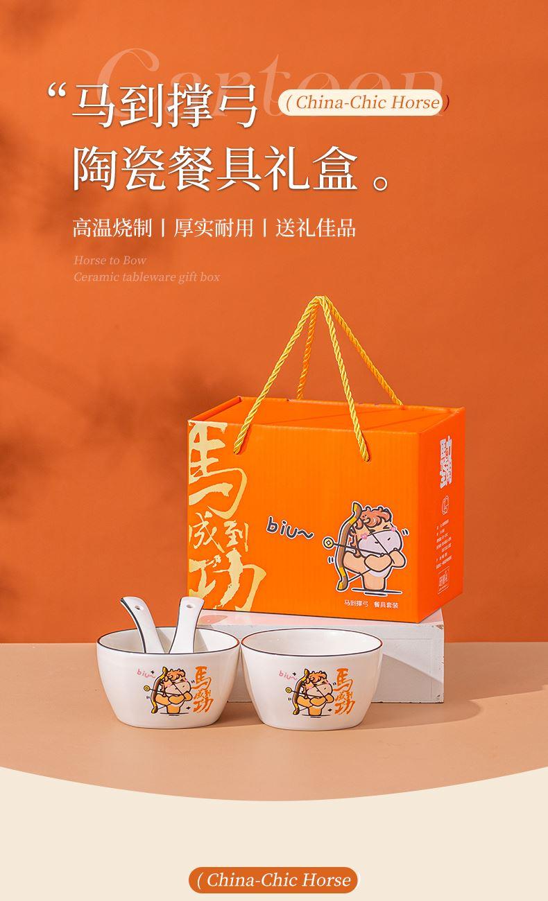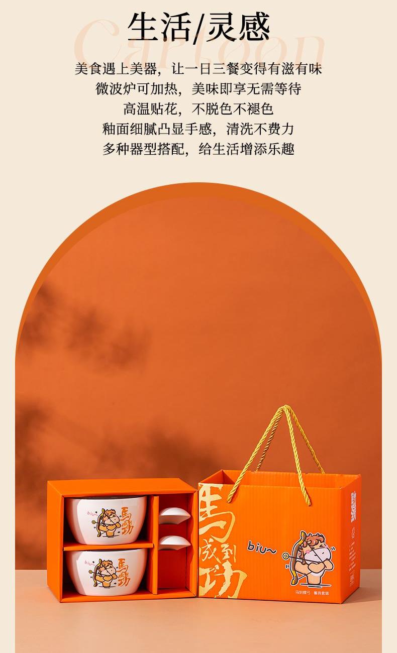 产品规格:陶瓷碗=口径10.5cm,高度6cm;三弯勺=长13.5cm