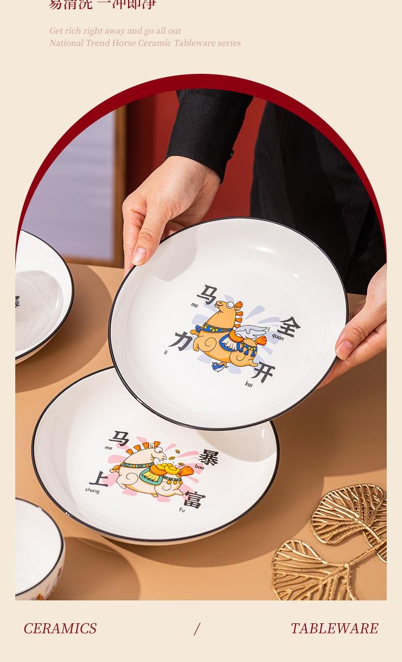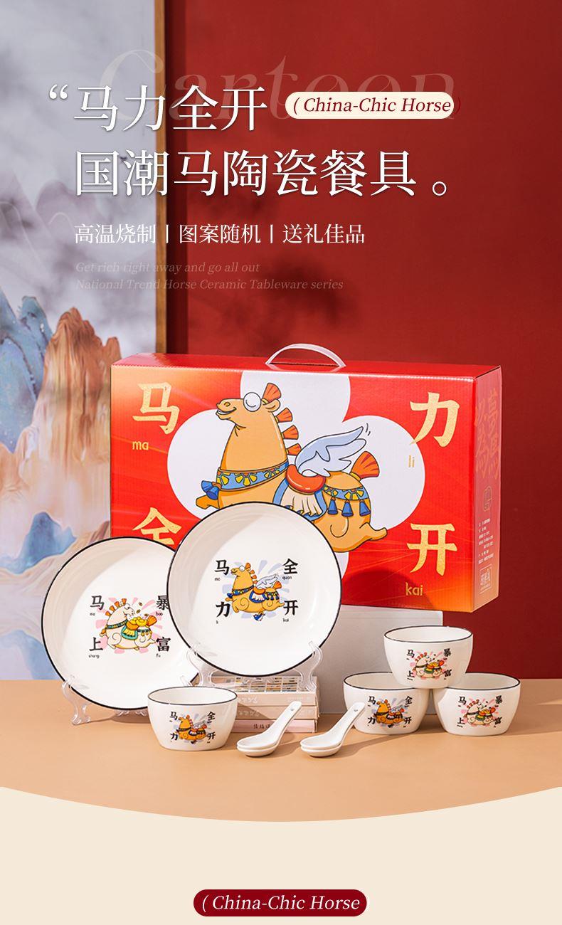 「翼马踏燕」纹样灵动鲜活,仿佛骏马振翅带风,踏出满室生机;不是老气的纹样,反而有点卡通新国风那味儿,摆桌上直接拉满视觉张力;让人新的一年活力十足,马力全开。